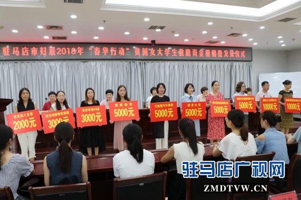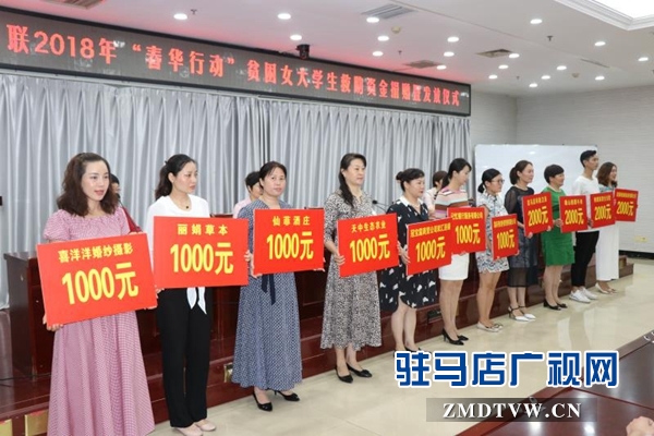 據(jù)悉,本次由駐馬店市婦聯(lián)、市女企業(yè)協(xié)會(huì)聯(lián)合舉辦的2018年“春華行動(dòng)”貧困女大學(xué)生救助資金捐贈(zèng)暨發(fā)放儀式,是市婦聯(lián)實(shí)施“巾幗關(guān)愛行動(dòng)”的具體實(shí)踐,也是婦聯(lián)組織和女企業(yè)家參與社會(huì)管理、關(guān)注婦女民生的實(shí)際行動(dòng)。近年來(lái),駐馬店市婦聯(lián)、市女企業(yè)協(xié)會(huì)等群團(tuán)組織積極響應(yīng)市委、市政府的號(hào)召,通過(guò)大力實(shí)施 “春華行動(dòng)”捐資助學(xué)活動(dòng),千方百計(jì)解決困難家庭子女的上學(xué)難問(wèn)題,得到了全社會(huì)的廣泛關(guān)注和積極參與,實(shí)現(xiàn)了政府、家庭、社會(huì)三方聯(lián)動(dòng),幫助貧困大學(xué)生圓了大學(xué)夢(mèng),受到了社會(huì)的廣泛贊譽(yù)和充分認(rèn)可。