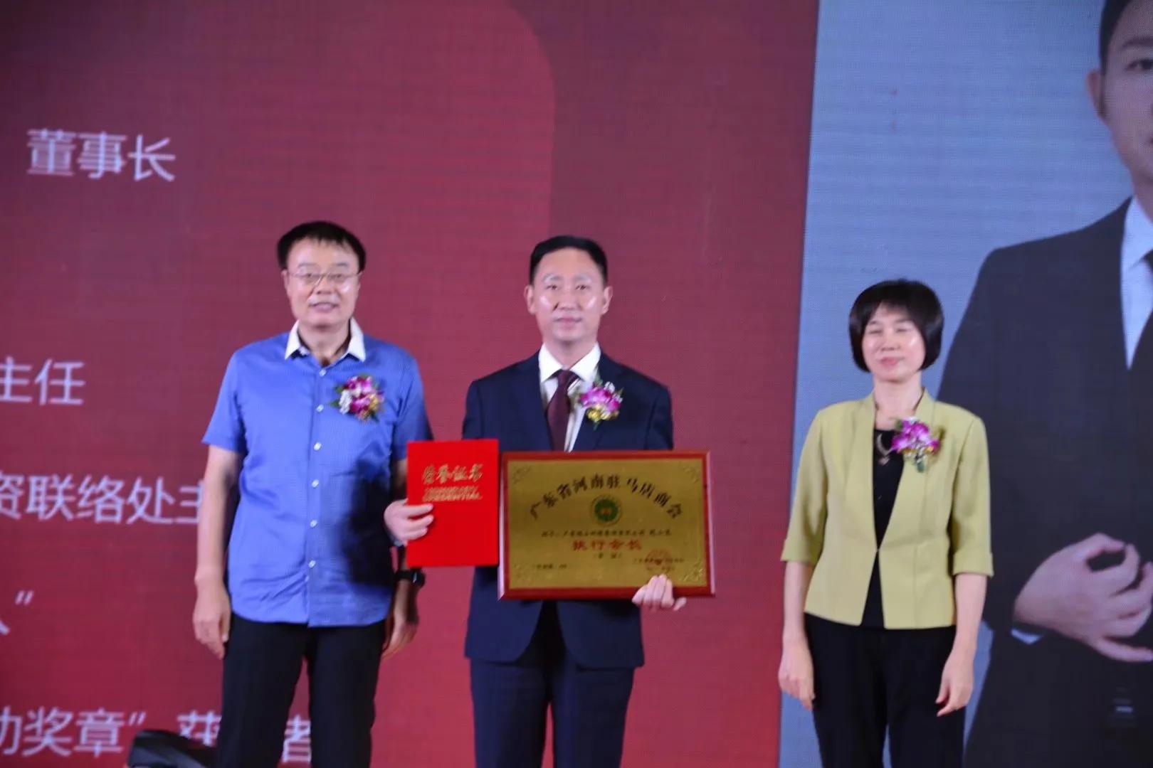 為廣東省河南駐馬店商會(huì)第一屆領(lǐng)導(dǎo)頒發(fā)牌匾證書