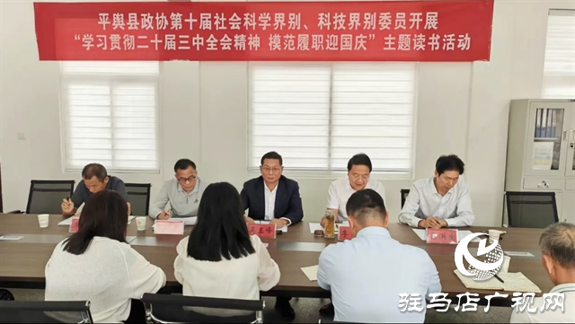 為了深入學習貫徹黨的二十屆三中全會精神,提高政協(xié)委員的政治素養(yǎng)和履職能力,慶祝中國人民政治協(xié)商會議成立75周年,以飽滿的熱情迎接國慶佳節(jié)。9月30日,平輿縣政協(xié)第十屆社會科學界別、科技界別委員開展“學習貫徹黨的二十屆三中全會精神 模范履職迎國慶”主題讀書活動。