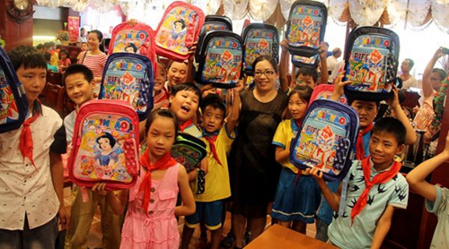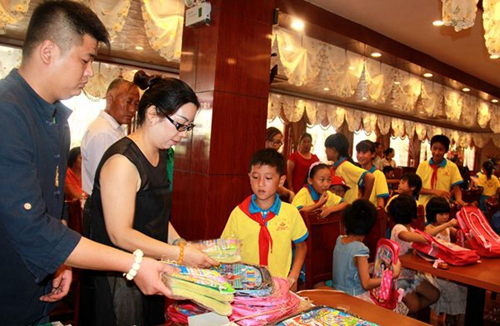 吃過西餐,客享來西餐廳還為孩子們子送上了書包等學(xué)習(xí)用品,考慮到天氣炎熱,駐馬店市開發(fā)區(qū)宏宇副食經(jīng)營部的工作人員又為孩子們送來了果汁飲料。
