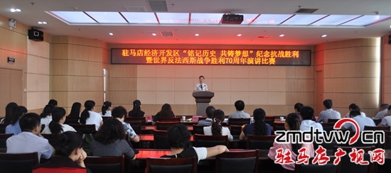 駐馬店廣視網(wǎng)訊:(記者 冀晴)為紀(jì)念抗日戰(zhàn)爭(zhēng)勝利暨世界反法西斯戰(zhàn)爭(zhēng)勝利70周年,弘揚(yáng)先輩的光榮傳統(tǒng),緬懷革命先烈,發(fā)揚(yáng)黨的的優(yōu)良傳統(tǒng)和作風(fēng),進(jìn)一步凝聚民族力量。開(kāi)發(fā)區(qū)宣傳部、團(tuán)區(qū)委聯(lián)合,于8月27日下午在管委會(huì)二樓第一會(huì)議室舉辦了“銘記歷史、共鑄夢(mèng)想”主題演講比賽。