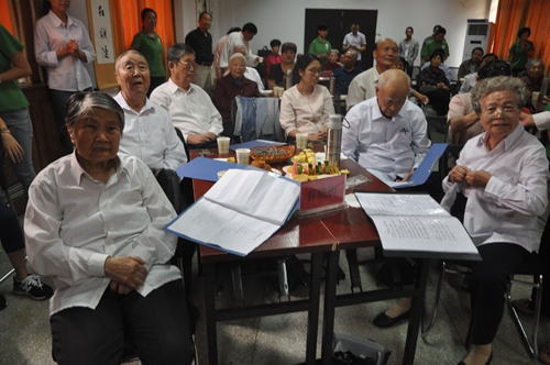 東方紅,太陽升,中國出了個毛澤東。這些兒時常聽的童謠,隨著社會的發(fā)展已久未響起了,但我們?nèi)砸獣r刻記著心中的東方紅。90歲高齡的銀馥華為大家獨唱了《東方紅》、隨后,有人給大家表演了國粹京劇,欣賞了戲曲,我們同要換一種味道,體驗新的感受,由孫新民為大家?guī)淼脑娫~朗誦:《沁園春·雪》。當天的節(jié)目可謂豐富多彩、多姿多樣,不但有歌曲、戲曲和朗誦,還有熱情奔放的秧歌舞以及以柔克剛、以靜制動,無形似有形的陳氏太極拳表演。中心工作人員也發(fā)揮各自專長,演唱了《感恩的心》等歌曲。最后大家在《相親相愛的一家人》 合唱中歡快結(jié)束。