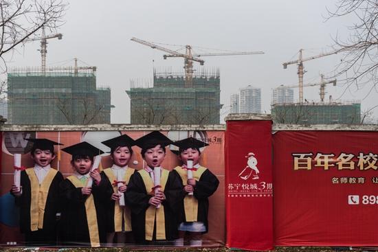 江蘇省無錫市塘鐵橋路,某樓盤圍擋上“百年名?!钡拇黉N廣告。視覺中國供圖(資料圖片)