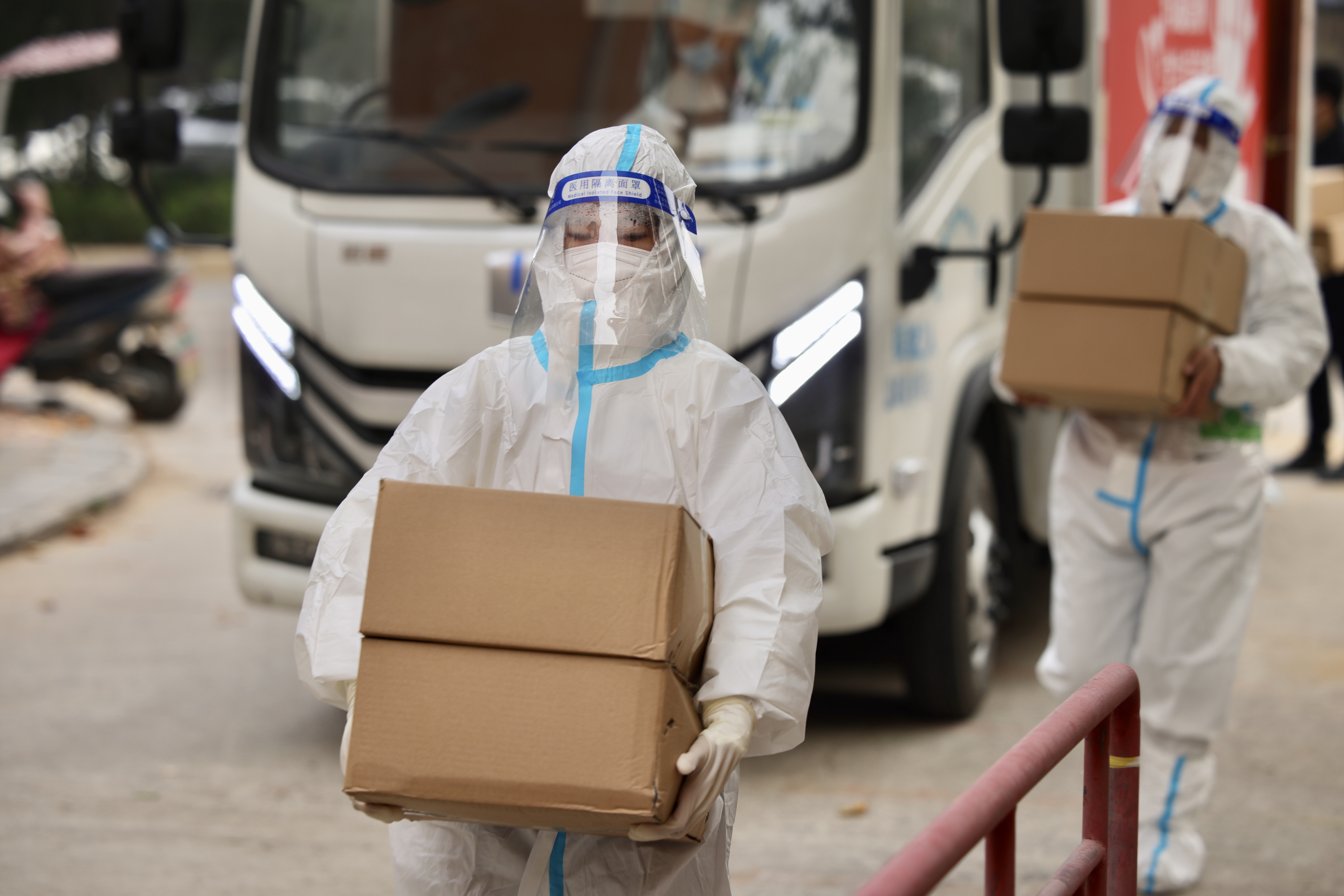富士康員工張亞超是一名志愿者,專門負(fù)責(zé)發(fā)放早餐。忙碌間隙,他告訴記者,“正在隔離的員工,我們都會(huì)點(diǎn)對(duì)點(diǎn)送餐上門。”