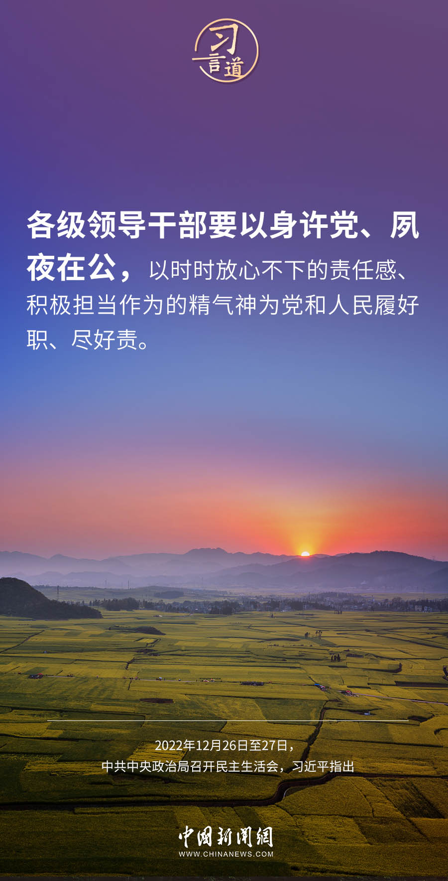 中共中央政治局于12月26日至27日召開民主生活會,中共中央總書記習近平主持會議并發(fā)表重要講話,他指出——