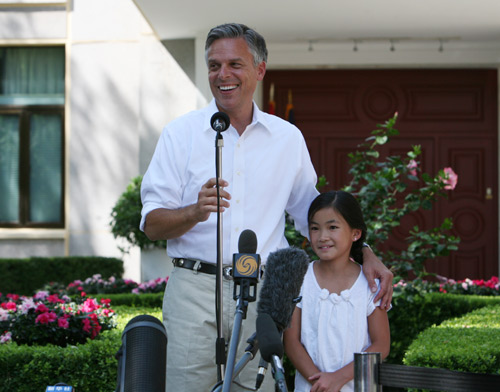 前美國駐華大使洪博培及其中國養(yǎng)女楊樂意(資料圖)