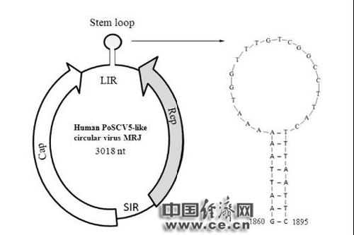 近期,江蘇檢驗檢疫局與江蘇省衛(wèi)生計生委聯(lián)合對口岸既往多份發(fā)熱患者的生物樣本進行宏基因組測序檢測,在上述患者的生物樣本中發(fā)現(xiàn)了一種新型環(huán)狀單鏈DNA病毒片段,通過進一步測序、序列組裝、PCR擴增,得到完整的病毒基因組。該病毒基因組全長由3018個核苷酸組成,編碼2個主要蛋白。經(jīng)與現(xiàn)有基因庫比對,與該病毒最相似的為豬糞相關的環(huán)狀病毒-5(PoSCV5),但其核苷酸同源性僅為84%,氨基酸同源性低于50%。經(jīng)過專家復核,認為這是一種在人體首次檢出的新型環(huán)狀單鏈DNA病毒。
