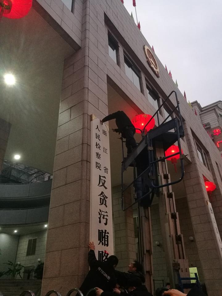 浙江在線2月4日訊(浙江在線記者 翁浩浩 金春華 李攀)2月4日一大早,不少經(jīng)過(guò)浙江省檢察院門(mén)口的市民群眾發(fā)現(xiàn),原本掛在大門(mén)口的“反貪污賄賂局”和“反瀆職侵權(quán)局”兩塊牌子已經(jīng)被摘去。