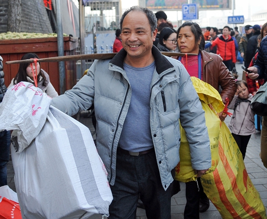 2月4日,春節(jié)后的第二個工作日,西安火車站外的廣場上,人們帶著大包小包,或面帶微笑揮手道別,或滿含期待步入城市。從贛州老家來西安的陳先生與妻子即將前往女兒家照顧外孫。視覺中國供圖