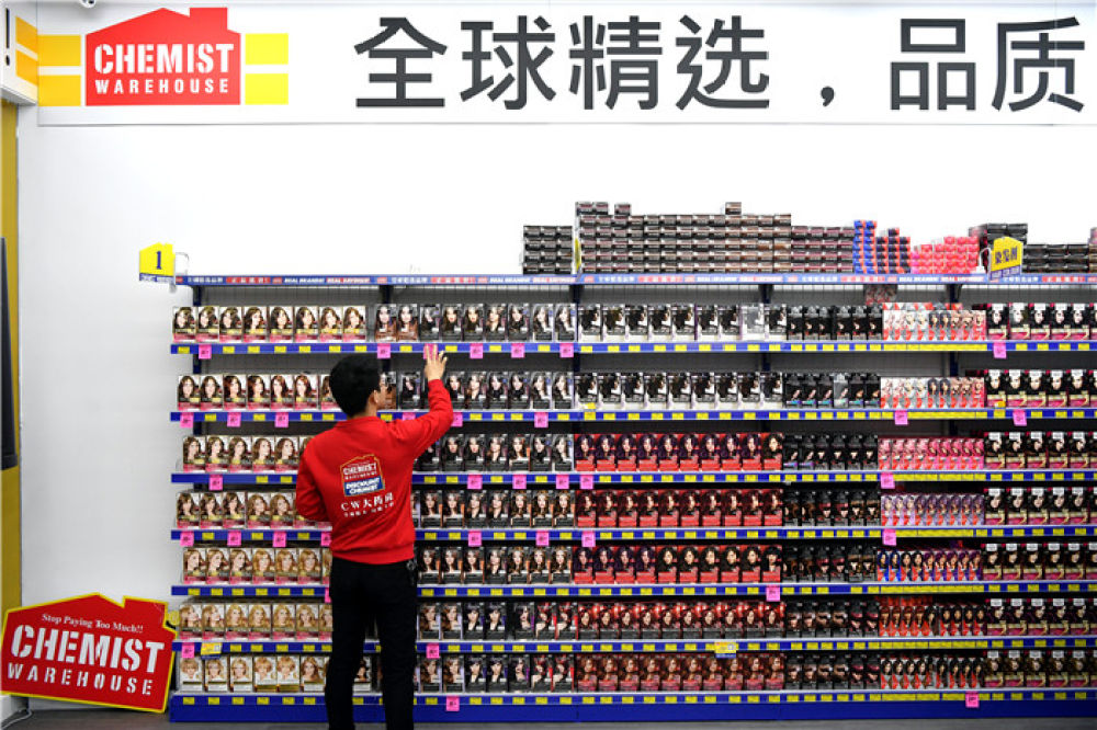 澳大利亞CW大藥房鄭州線下店的員工在整理商品價簽(11月6日攝)。新華社記者 李嘉南 攝