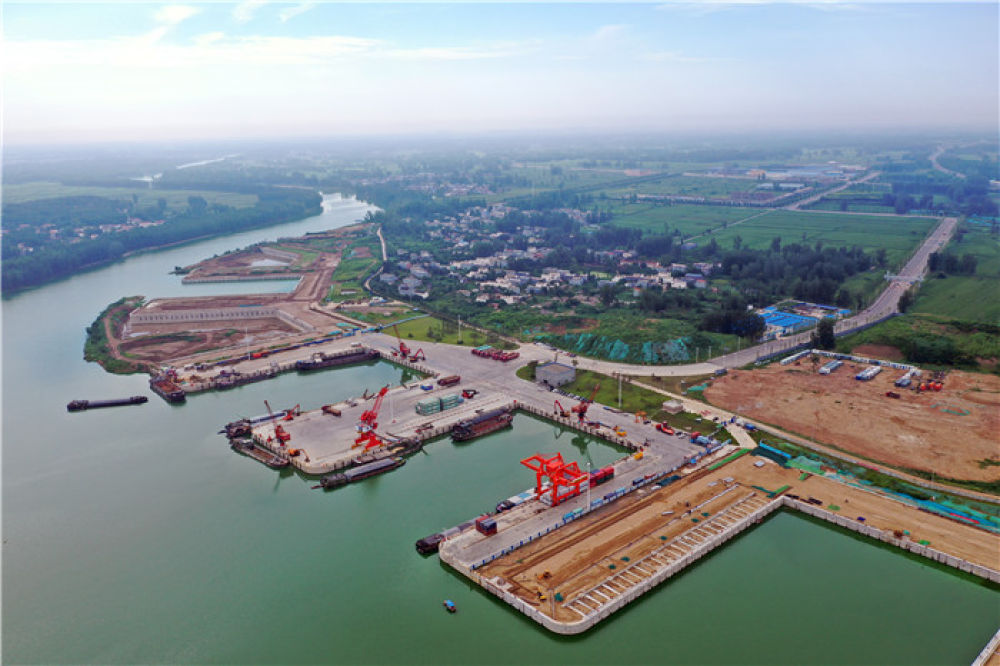 7月31日拍攝的周口中心港碼頭(無人機照片)。新華社記者 李嘉南 攝