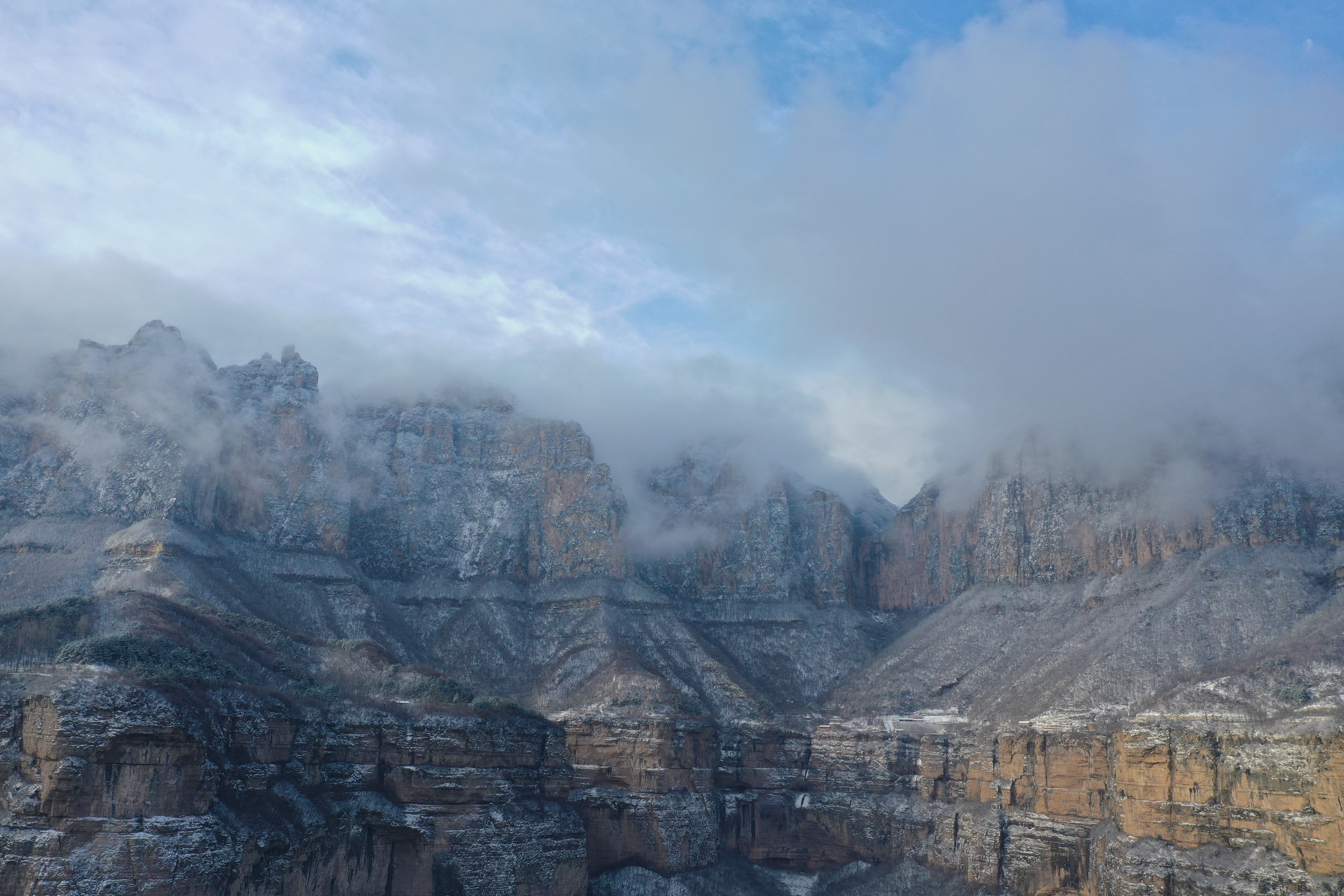 12月10日,大雪給冬日的林州太行大峽谷披上了美麗的“銀裝”,積雪與群山相映成趣。