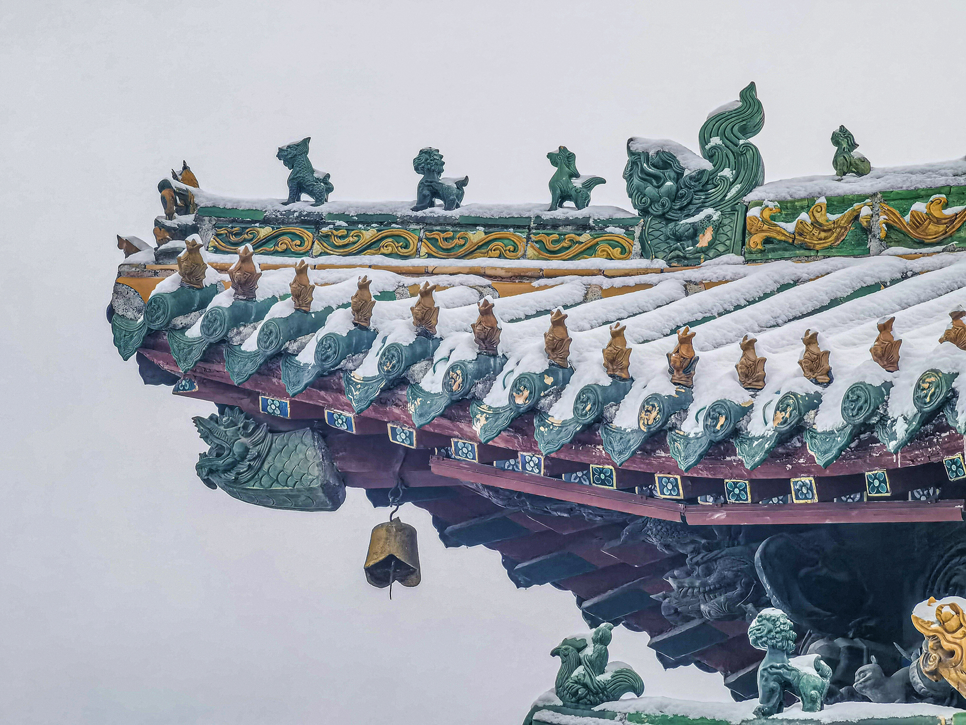 七里長街的青石板路,仿佛鋪上了厚厚的積雪絨毯,兩旁的明清建筑銀裝素裹,古樸典雅,美輪美奐。
