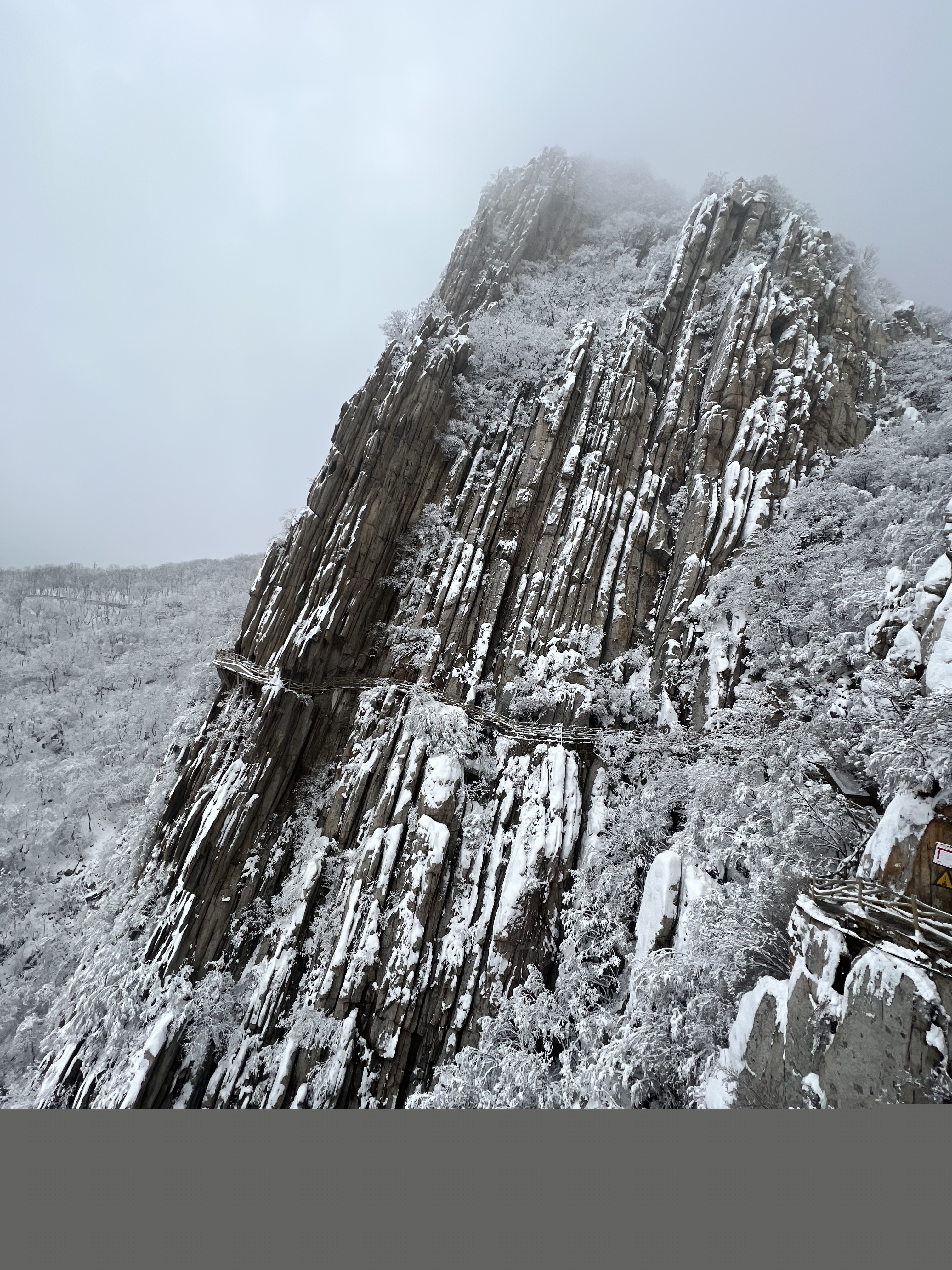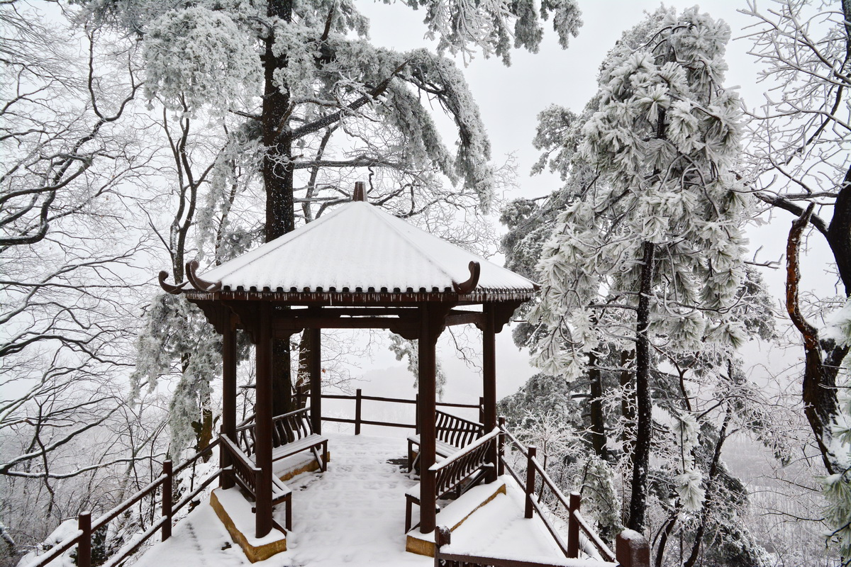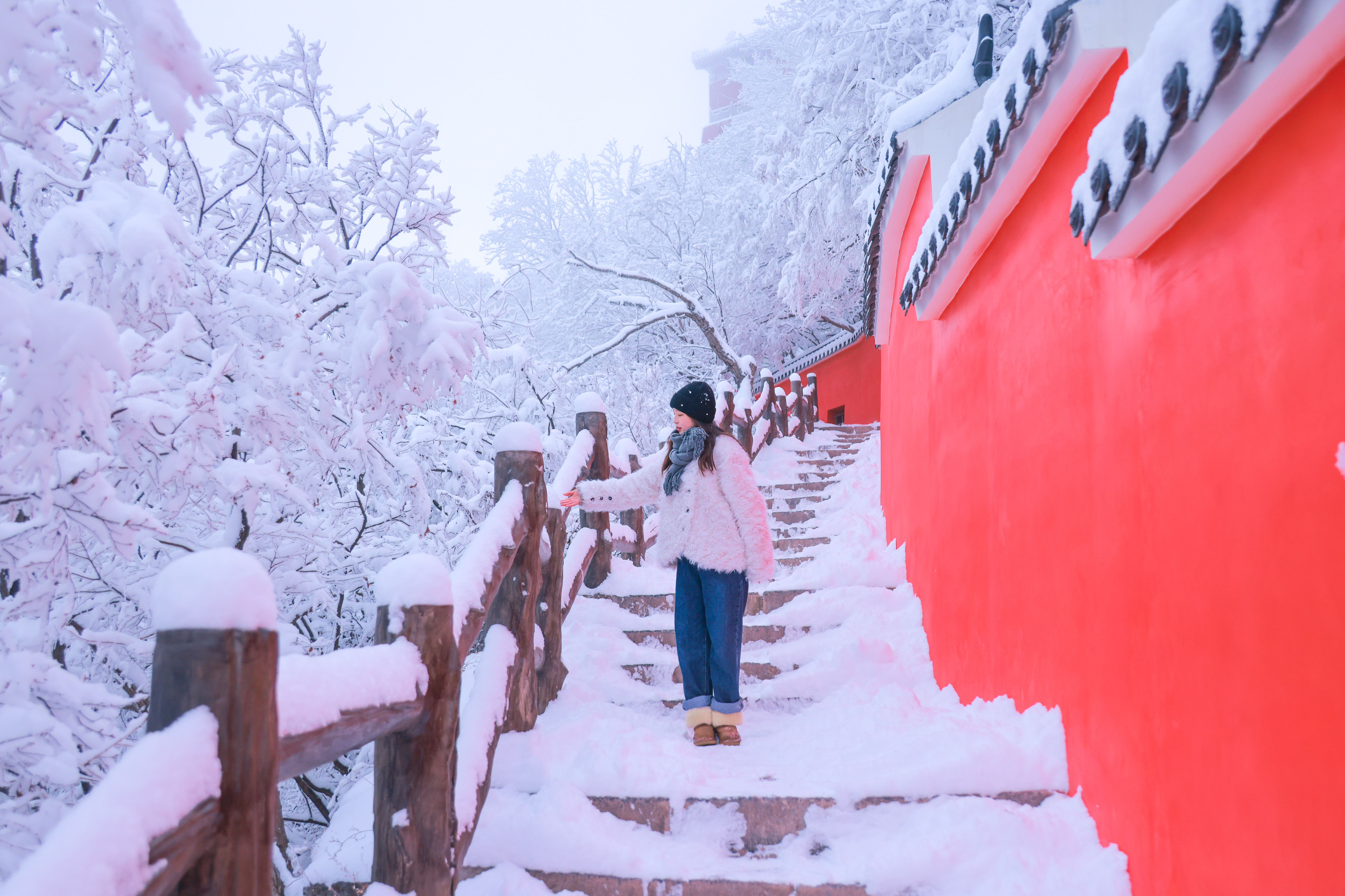 山川、松柏、灌木和怪石上都覆蓋上了一層厚厚的積雪,放眼山巔,雪色彌漫,處處都是絕美的景致。