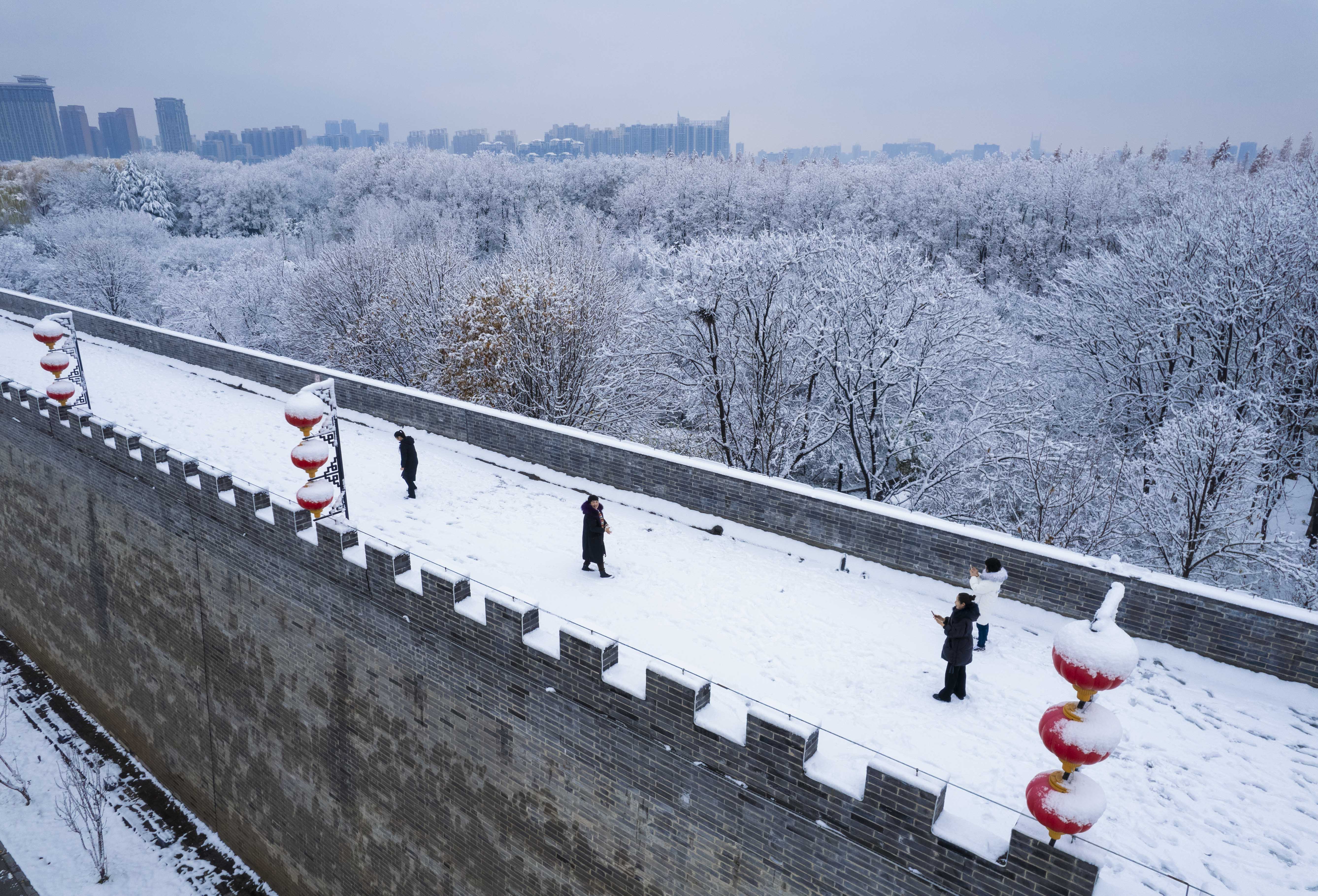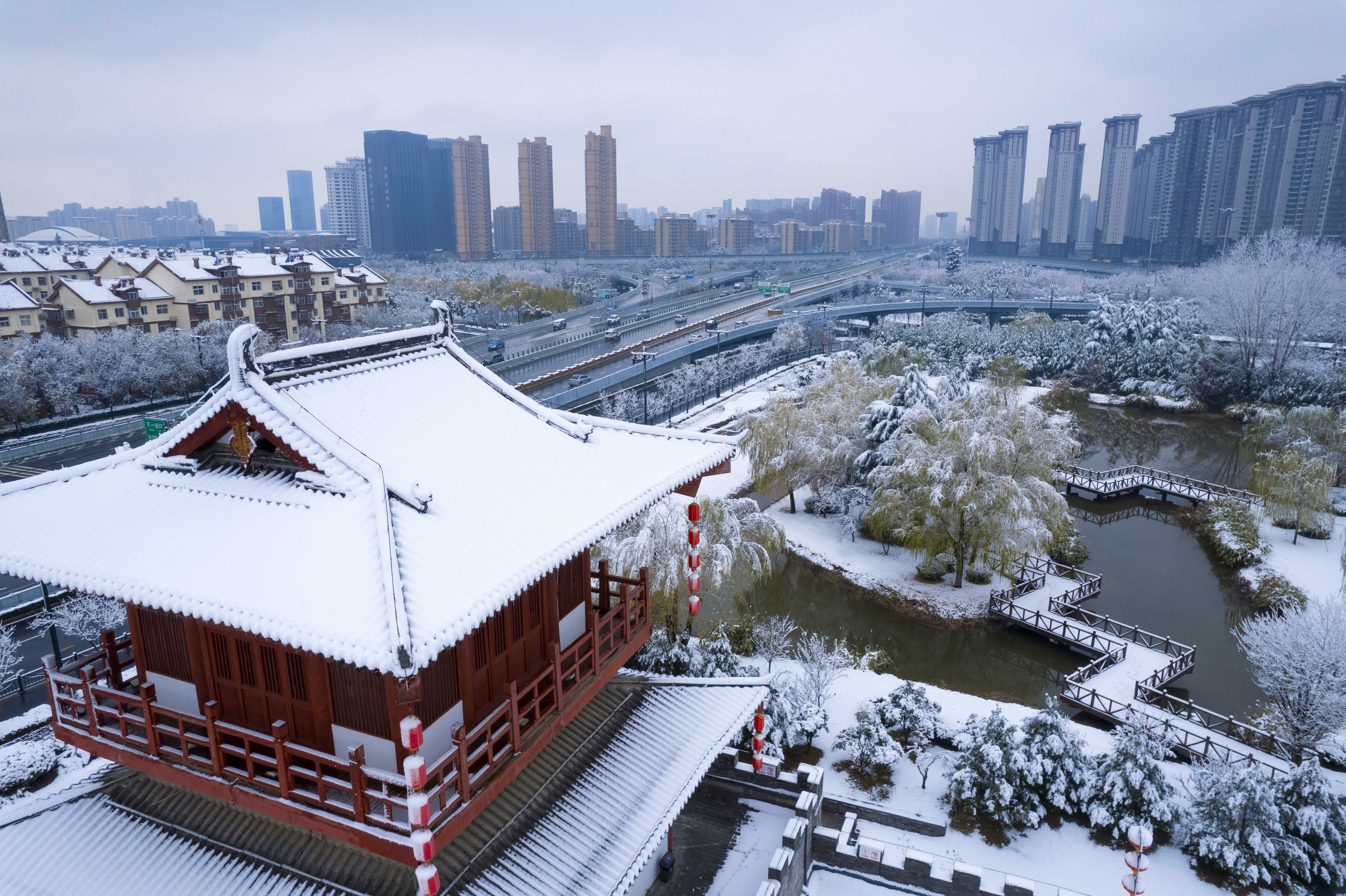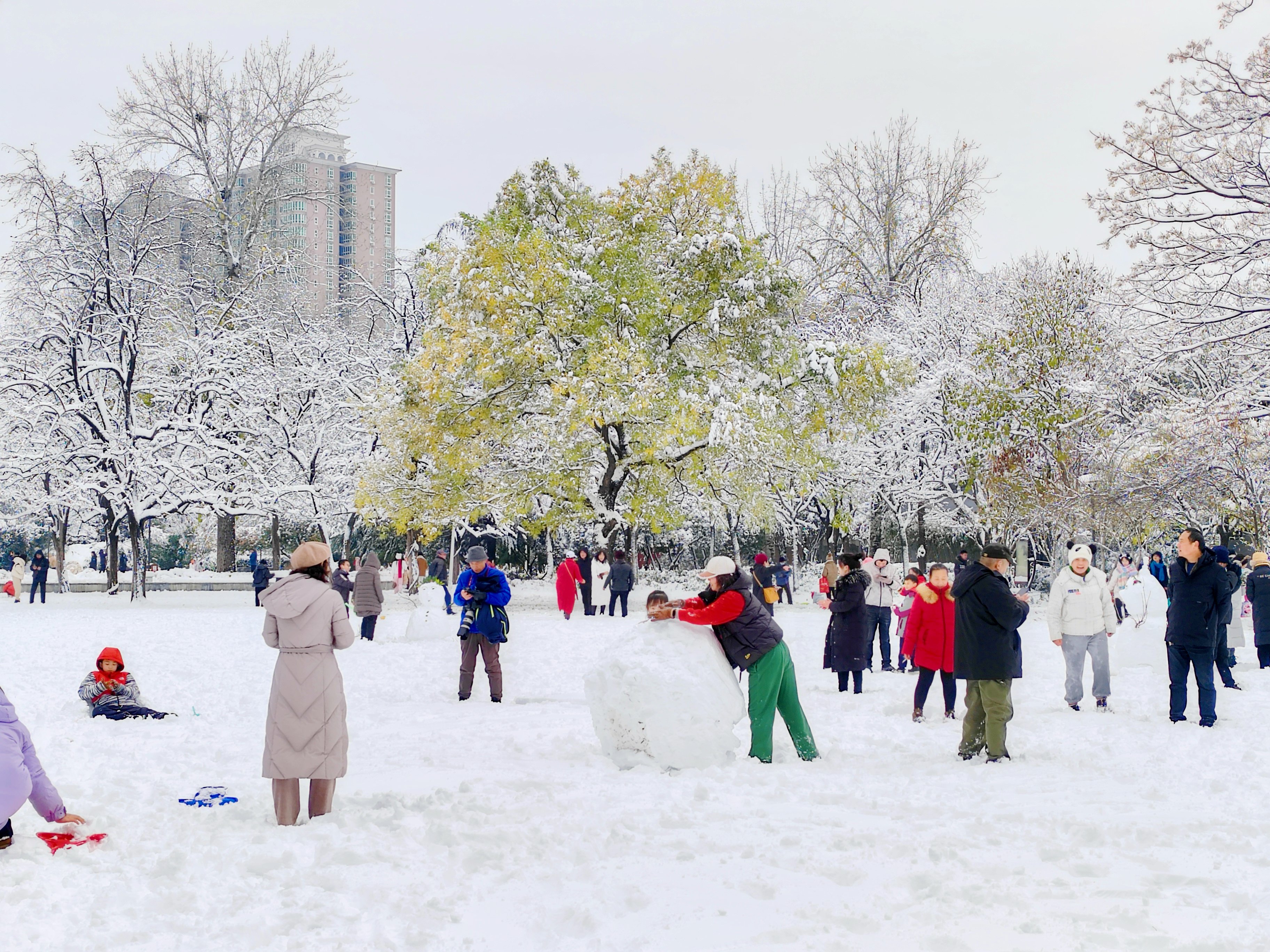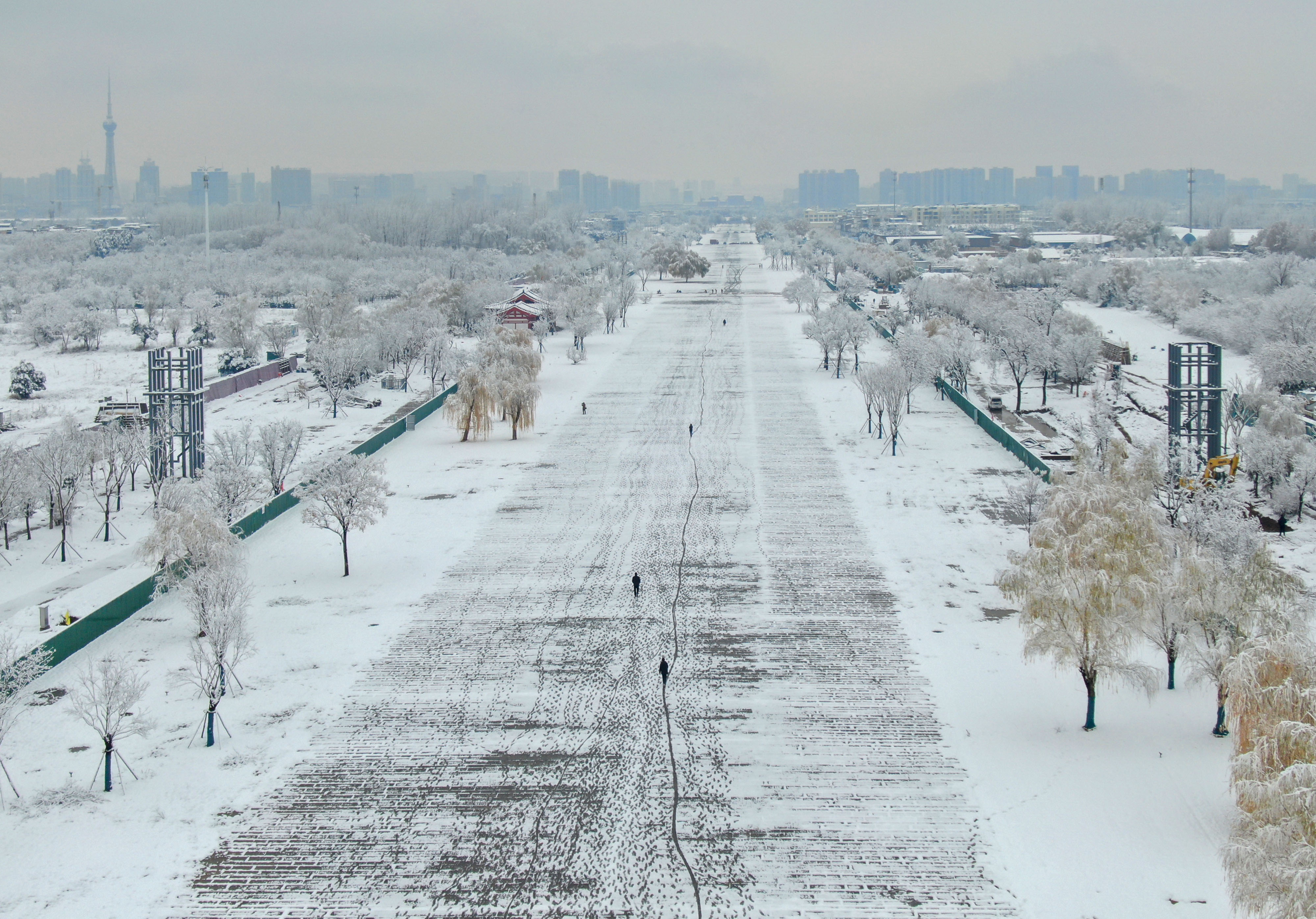 在這場大雪的裝點下,鄭州碧沙崗公園、西流湖公園、人民公園等形成了一幅清新脫俗的冬日雪景,引來不少市民游覽賞景。
