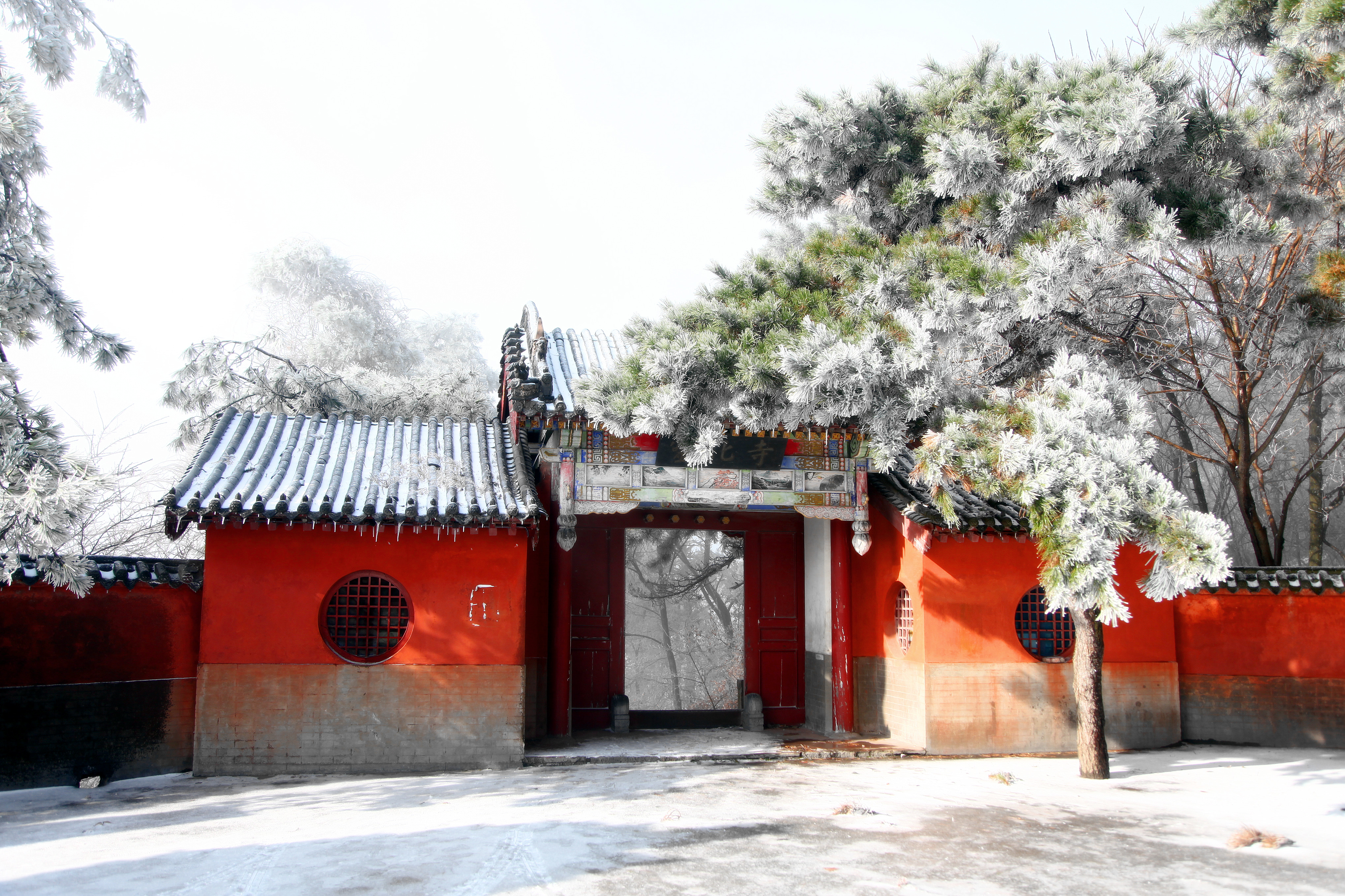 幾叢凌寒獨自開的臘梅,幾株被冰雪覆蓋的紅楓樹,更為明道宮此時迷人的景色增添了美的主旋律。