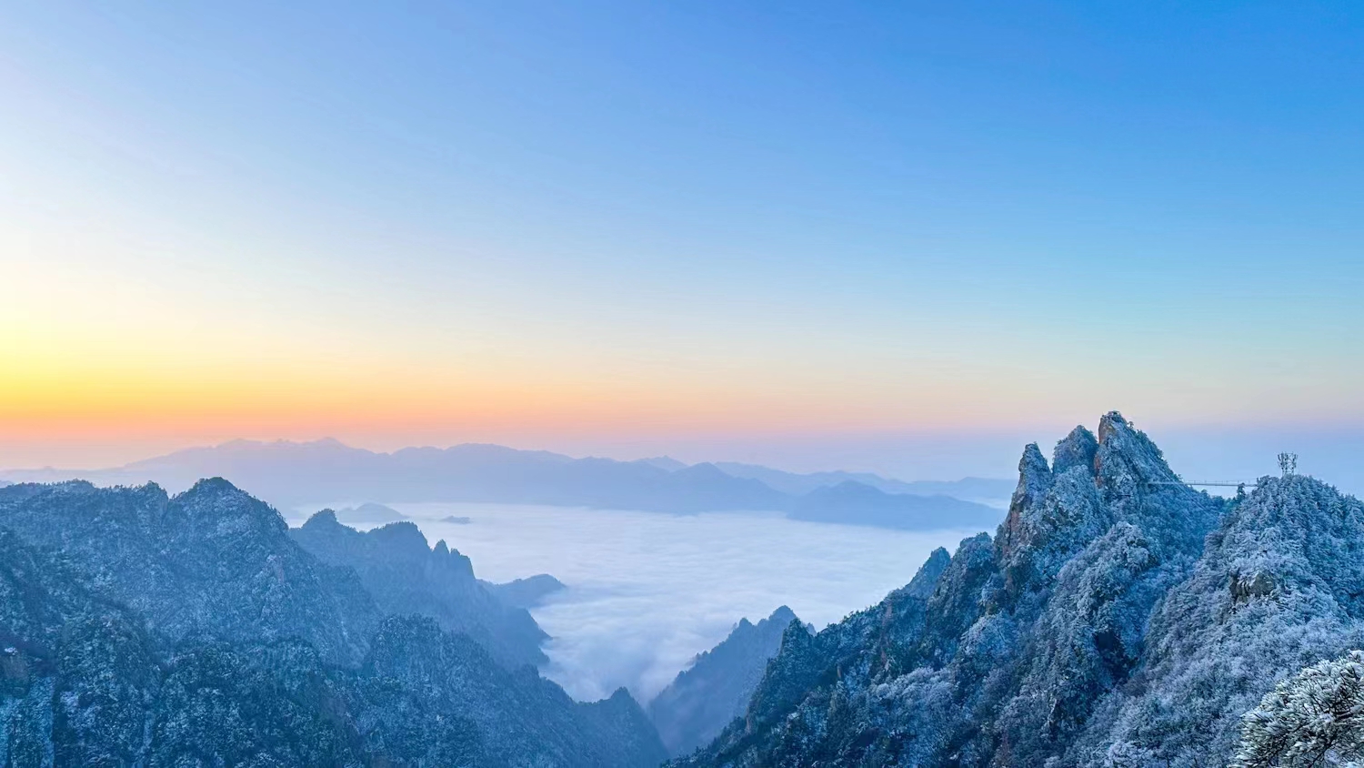 天光微亮,云霧蒼茫、群山連綿、白雪皚皚。12月13日,云臺山再上央視,霧凇雪景被全網(wǎng)刷屏!