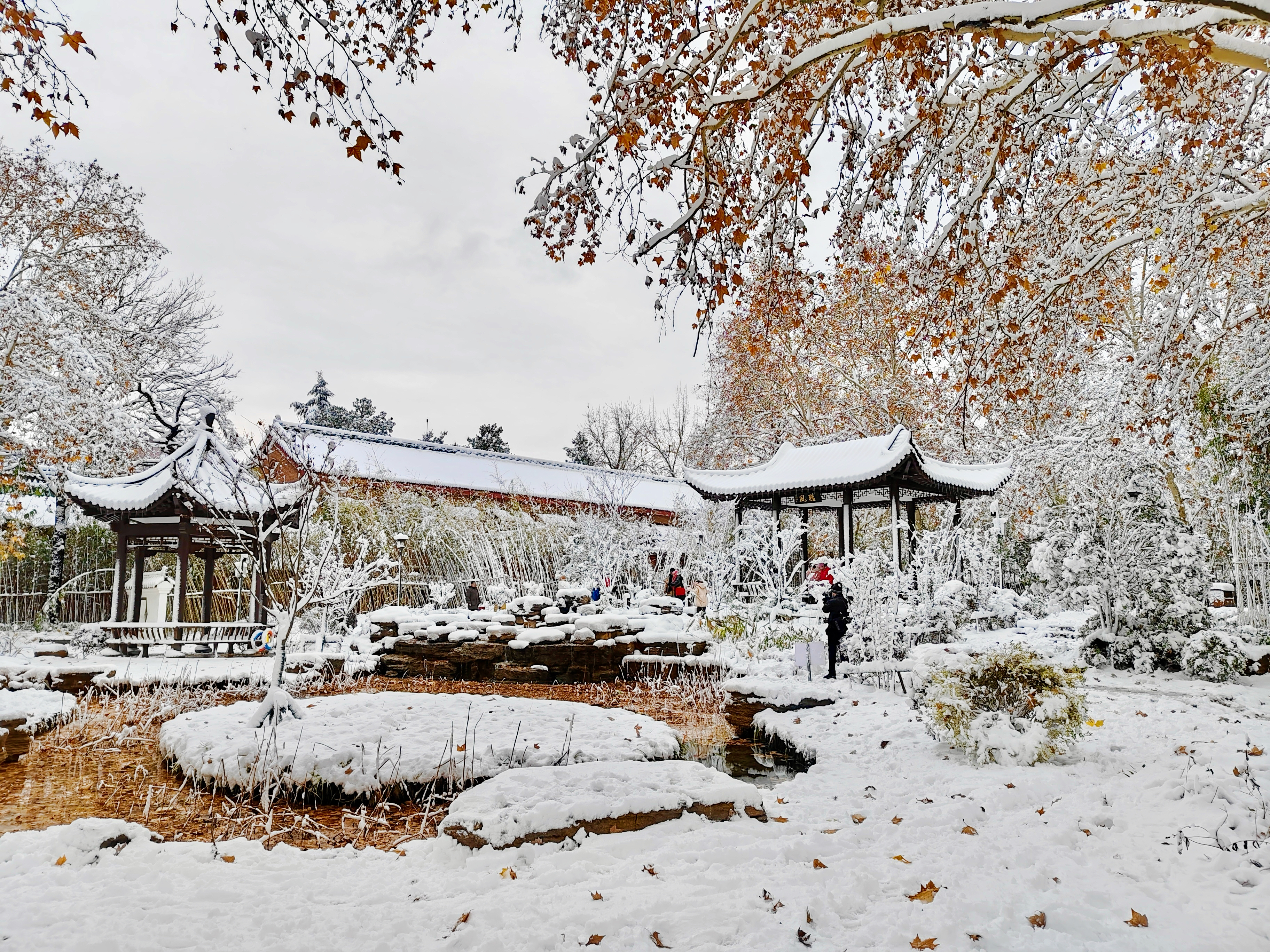 近日,濮上園迎來入冬首場大雪,處處銀裝素裹,隨手一拍就是氛圍感滿滿的大片。