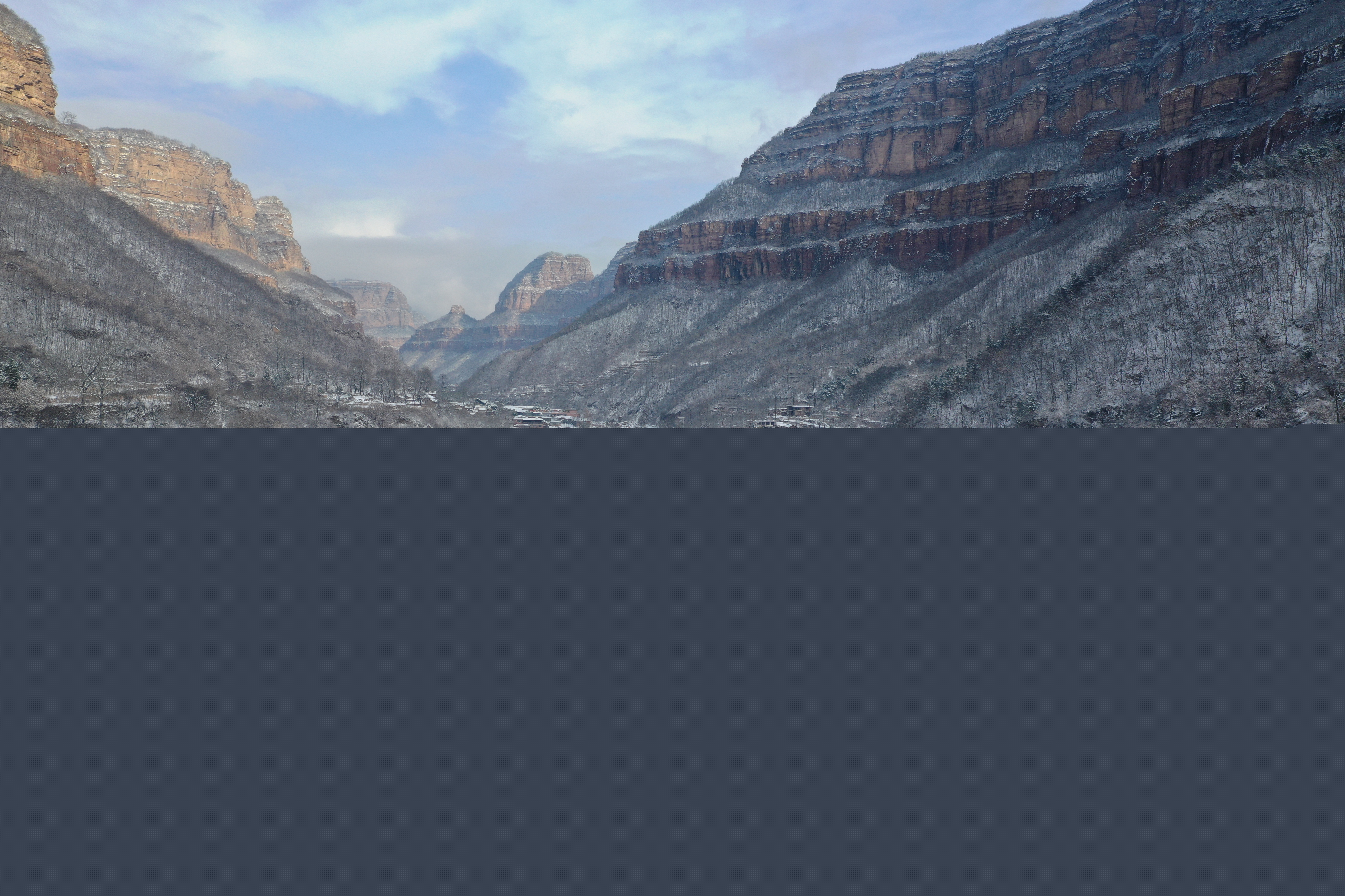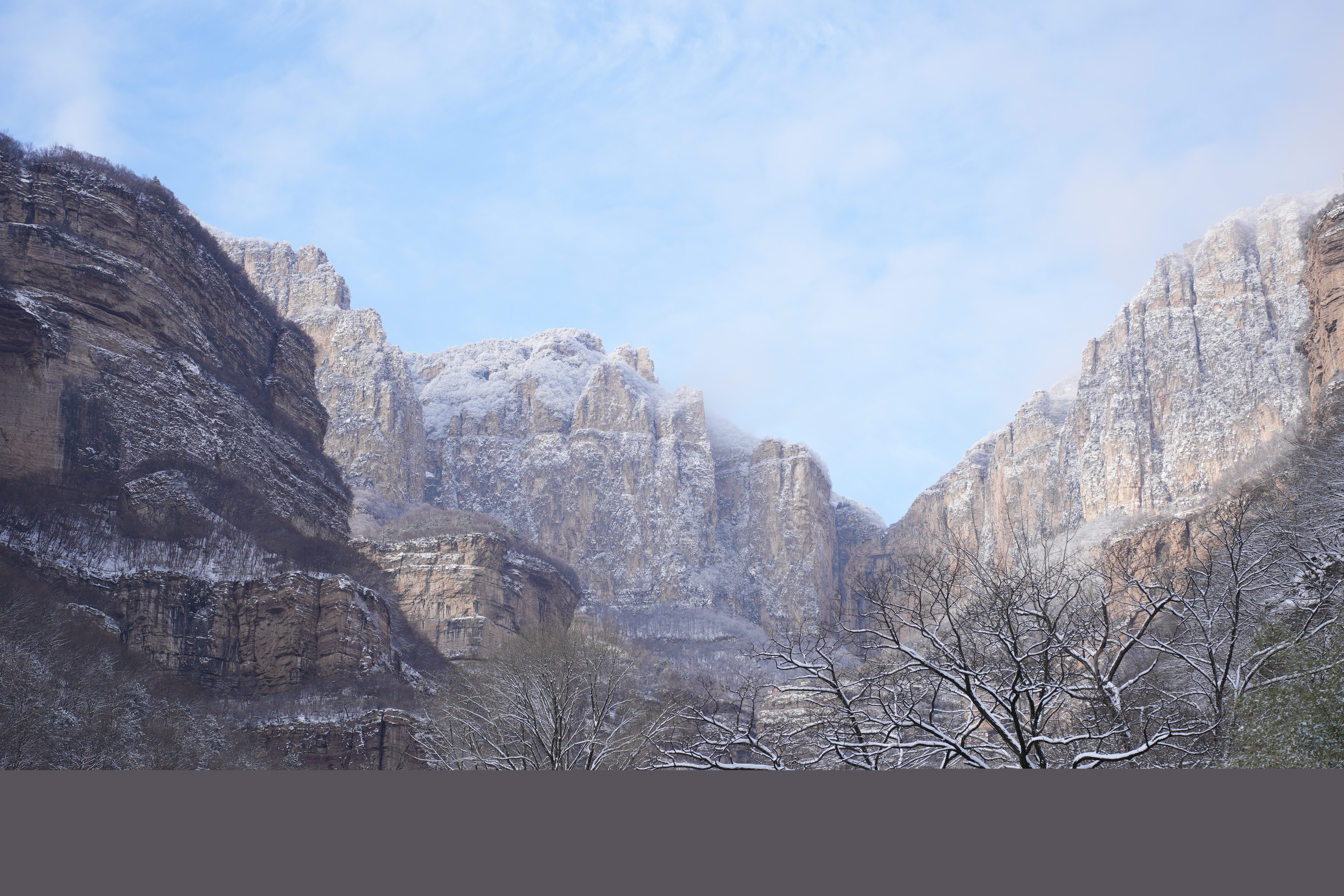 整個太行大峽谷都覆蓋在皚皚白雪之下,流露出安然素美的意境,勾勒出一幅朦朧的雪景畫卷,令人嘆為觀止。