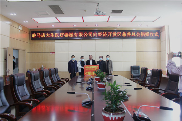 駐馬店廣電融媒體消息:4月15日,駐馬店大生醫(yī)療器械有限公司向經濟開發(fā)區(qū)慈善總會捐贈防護口罩儀式在管委會第二會議室舉行。駐馬店經濟開發(fā)區(qū)黨委書記、管委會主任史愛民,慈善總會會長李如意,黨政辦公室主任張文高,慈善總會常務副會長郭秀根共同出席了捐贈儀式。
