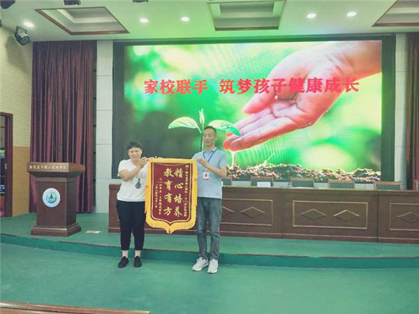 近日,在駐馬店樹人國際學校散學典禮上,一名學生家長為學校送來錦旗,感謝學校對女兒的精心培育,使孩子在德智體美勞各方面都取得長足進步。