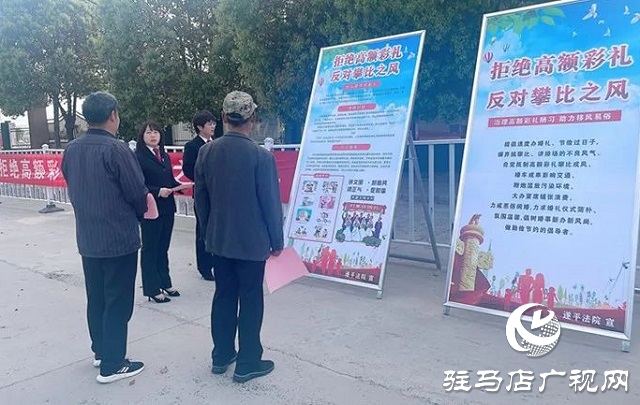 為弘揚健康節(jié)儉文明婚嫁新風,4月18日下午,遂平縣人民法院與玉山鎮(zhèn)人民法庭干警走進桃花園社區(qū),為社區(qū)群眾送去“普法大禮包”。