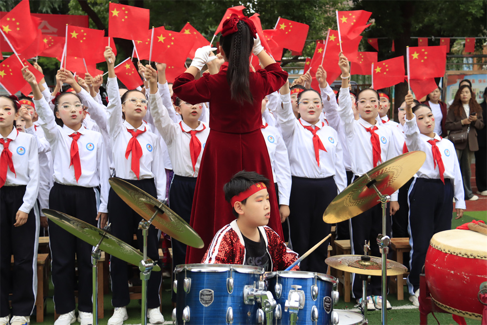 “一曲紅歌憶烽火,千秋偉業(yè)敬山河。”一首首紅歌,既是波瀾壯闊歷史的生動(dòng)見(jiàn)證,更是紅色精神的代代傳承。此次賽歌會(huì)中,《歌唱祖國(guó)》《中國(guó)中國(guó),鮮紅的太陽(yáng)永不落》《游擊隊(duì)之歌》《志愿軍戰(zhàn)歌》《走向復(fù)興》《紅領(lǐng)巾心向黨》《我們走在大路上》《團(tuán)結(jié)就是力量》《少年中國(guó)夢(mèng)》《沒(méi)有共產(chǎn)黨就沒(méi)有新中國(guó)》等經(jīng)典曲目相繼登臺(tái)。同學(xué)們用稚嫩卻堅(jiān)定的嗓音,唱出對(duì)祖國(guó)的贊美,也讓紅色記憶在歌聲中深深扎根。