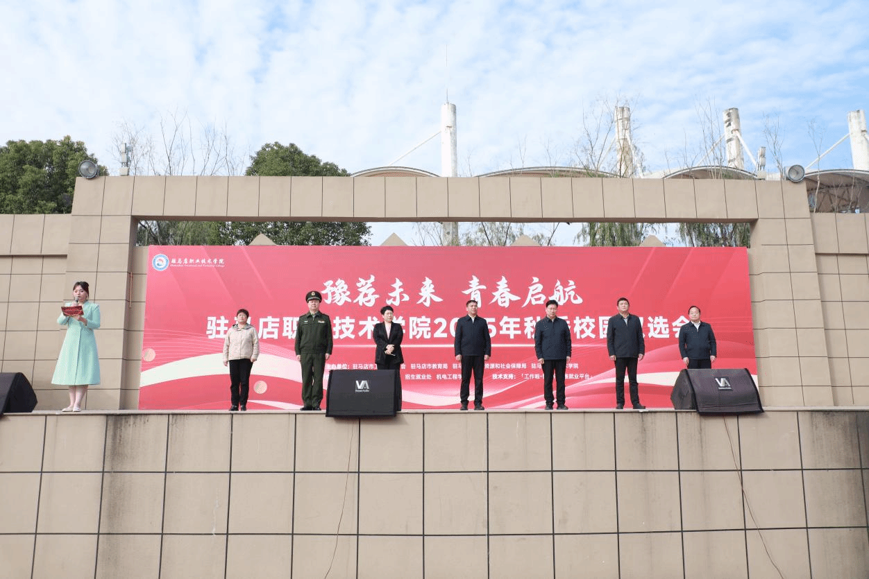 宋華民校長在開幕儀式上致辭。首先,他代表學(xué)校全體師生,向蒞臨現(xiàn)場的各級領(lǐng)導(dǎo)、嘉賓及企業(yè)代表表示熱烈歡迎,向長期關(guān)心支持學(xué)校建設(shè)發(fā)展的市委市政府、市軍分區(qū)、市直各單位及社會各界致以衷心感謝,并向即將踏上職業(yè)征程的畢業(yè)生送上美好祝福與殷切期望。隨后,宋校長介紹了駐馬店職業(yè)技術(shù)學(xué)院的發(fā)展歷程,學(xué)校歷經(jīng)十六載櫛風(fēng)沐雨,已發(fā)展成為以電子信息類、智能制造類、土木建筑類、教育類、財經(jīng)商貿(mào)類、康養(yǎng)與護(hù)理類6大專業(yè)群為特色的綜合型高職院校。近年來,學(xué)校每年為社會輸送近6000名“善創(chuàng)新、懂技術(shù)、能操作”的高素質(zhì)技術(shù)技能人才。最后,宋校長強(qiáng)調(diào),本次雙選會的舉辦,既是市委市政府高度重視就業(yè)工作的具體體現(xiàn),也是政企校協(xié)同育人、助力畢業(yè)生高質(zhì)量就業(yè)的重要實(shí)踐,希望企業(yè)家朋友們能夠慧眼識才、廣招博攬,也期待畢業(yè)生們珍惜機(jī)遇、展示風(fēng)采,在逐夢路上實(shí)現(xiàn)個人價值與企業(yè)發(fā)展的雙向共贏。