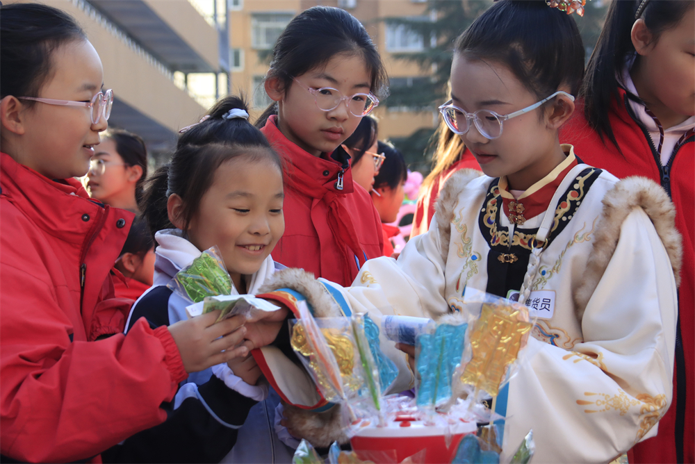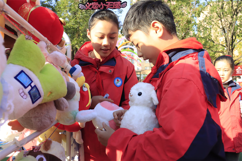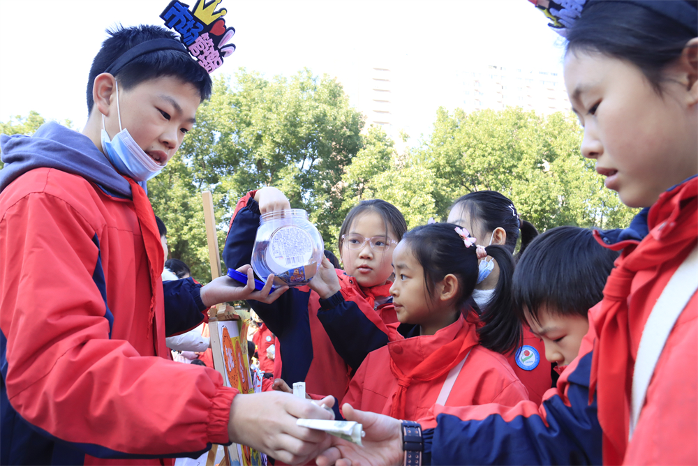 叫賣聲、歡笑聲、交流聲此起彼伏,匯成一片生動的市集圖景。商品琳瑯滿目,種類豐富:既有啟迪智慧的經(jīng)典讀物、展現(xiàn)個性的創(chuàng)意手辦,也有精巧別致的飾品和趣味盎然的玩具。“小銷售員”們熱情推介,“小收銀員”們認(rèn)真記錄,“市場管理員”們盡責(zé)維護(hù)秩序。為吸引顧客,各班各顯其能:有的推出“買一贈一”優(yōu)惠,有的設(shè)置抽獎環(huán)節(jié)……多樣的營銷方式將現(xiàn)場氣氛不斷推向高潮。