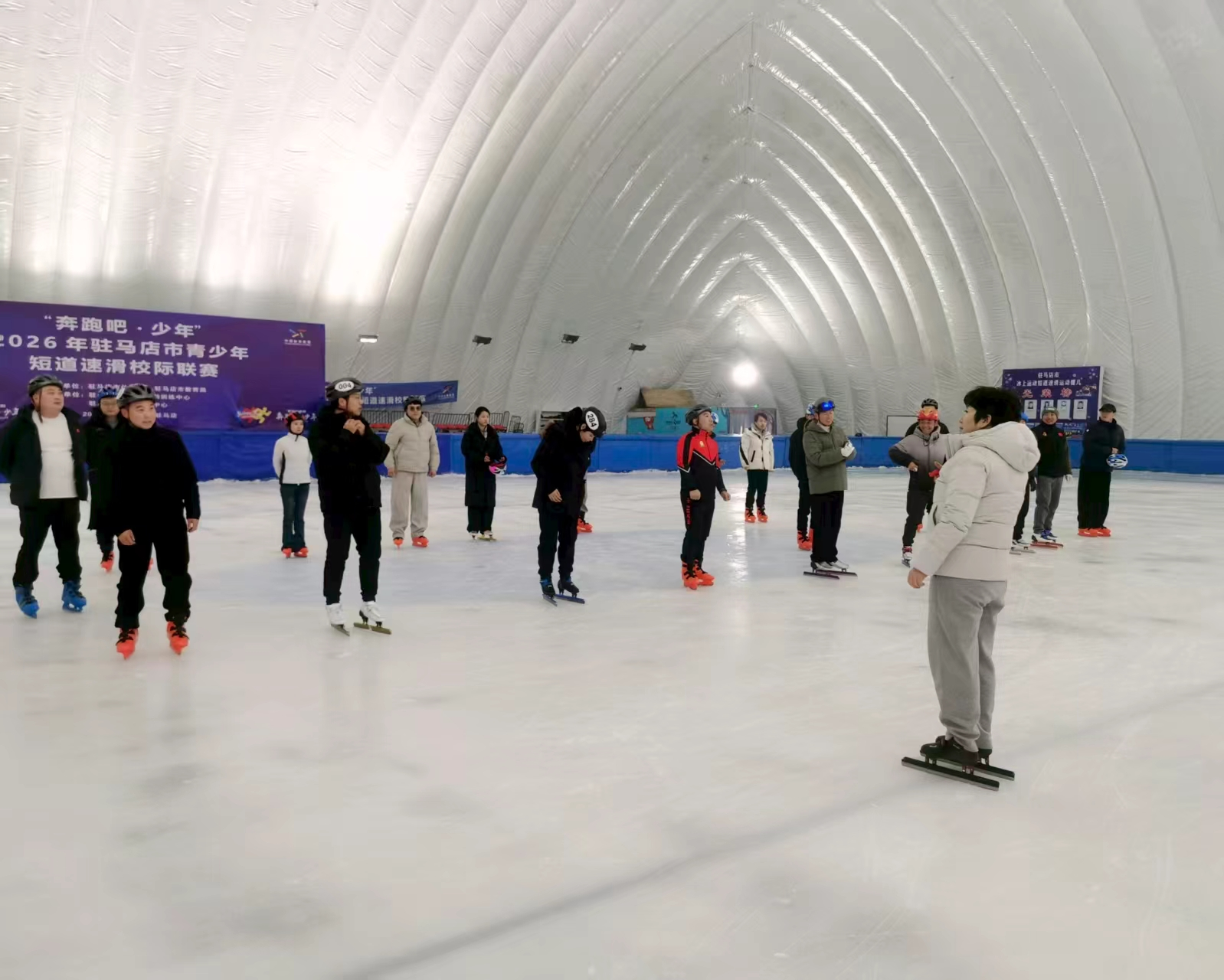 為扎實(shí)推進(jìn)《體育強(qiáng)國建設(shè)綱要》目標(biāo)任務(wù)落實(shí),切實(shí)推動滑冰事業(yè)后備人才發(fā)展,規(guī)范滑冰行業(yè)執(zhí)教及執(zhí)裁標(biāo)準(zhǔn),由中國滑冰協(xié)會指導(dǎo)、河南體育學(xué)院主辦、河南體育學(xué)院競訓(xùn)處(冬季運(yùn)動管理中心)承辦、駐馬店市體育局協(xié)辦的2026年中國滑冰協(xié)會初級滑冰教練員技能等級(初級崗培專項(xiàng))暨二級滑冰裁判員培訓(xùn)班(駐馬店站),于1月31日至2月2日在駐馬店市鑫鵬冰上運(yùn)動中心順利舉辦并完成結(jié)業(yè)考核。來自省內(nèi)各地市體育、教育系統(tǒng)的學(xué)員齊聚一堂,系統(tǒng)完成了為期3天的專業(yè)培訓(xùn)與考核。