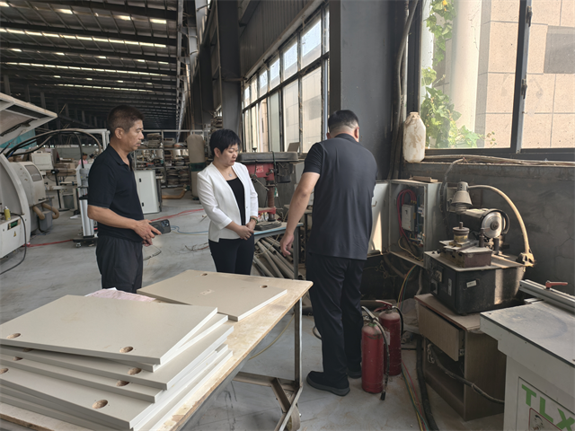 檢查組首先走訪了龍強板業(yè)等兩家家具加工廠。企業(yè)工作人員介紹,廠內使用的家具材料具有良好的阻燃性能,并現場進行了演示。工作人員仔細檢查了配電箱及周邊消防器材配置情況,并特別強調,家具企業(yè)生產過程中產生的粉塵極易引發(fā)火災,必須嚴格落實日常清理制度,堅決杜絕火災隱患。