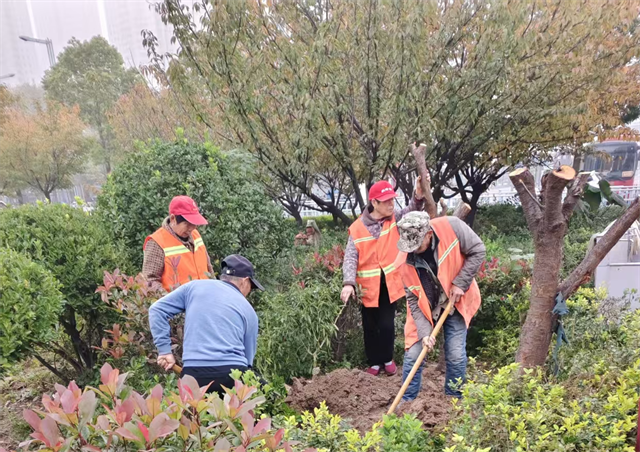 在補(bǔ)植現(xiàn)場(chǎng),工人們分工協(xié)作、有條不紊,嚴(yán)格按照“挖坑、培土、澆水”的標(biāo)準(zhǔn)化作業(yè)流程開展。栽種時(shí)精準(zhǔn)調(diào)整樹木位置與深度,培土后反復(fù)壓實(shí),最后澆透定根,為苗木成活筑牢基礎(chǔ)。同時(shí),工人們還對(duì)廣場(chǎng)內(nèi)原有老化植株進(jìn)行了修剪整形,清理綠地雜草與枯枝,既改善了植物生長環(huán)境,也優(yōu)化了景觀整體形態(tài)。